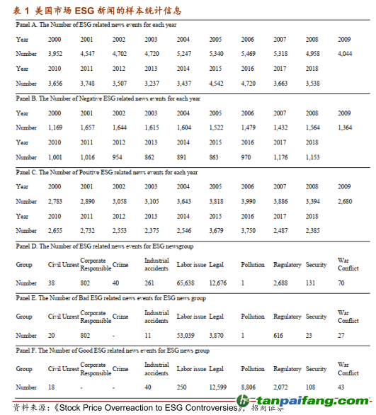 ●在投資決策過程中,越來越多投資者會考慮環(huán)境、社會和公司治理(ESG)問題,但是由于投資者的注意力和認知能力有限,投資者往往會過度關(guān)注ESG負面新聞而忽視公司的基本面信息。本篇作為“琢璞”系列報告的第二十八篇,我們?yōu)榇蠹彝扑]了一篇非常值得一讀的文獻《Stock Price Overreaction to ESG Controversies》。這篇文章通過實證發(fā)現(xiàn),股價會對負面的ESG新聞反應(yīng)過度,并且這種過度反應(yīng)在小市值股票和機構(gòu)投資者持股比例高的股票中更為明顯。 本`文@內(nèi)-容-來-自;中_國_碳排0放_交-易=網(wǎng) t an pa ifa ng . c om