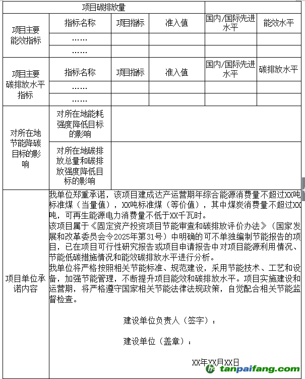 第二十條 固定資產(chǎn)投資項(xiàng)目節(jié)能審查應(yīng)納入甘肅省投資項(xiàng)目在線審批監(jiān)管平臺(tái)統(tǒng)一管理,實(shí)行網(wǎng)上受理、辦理、監(jiān)管和服務(wù),實(shí)現(xiàn)審查過(guò)程和結(jié)果的可查詢、可監(jiān)督。不單獨(dú)進(jìn)行節(jié)能審查的固定資產(chǎn)投資項(xiàng)目應(yīng)當(dāng)通過(guò)在線審批監(jiān)管平臺(tái)報(bào)送項(xiàng)目能源消費(fèi)和碳排放情況摘要表(見(jiàn)附件1)。 本文+內(nèi)-容-來(lái)-自;中^國(guó)_碳+排.放_(tái)交^易=網(wǎng) t a n pa ifa ng .c om