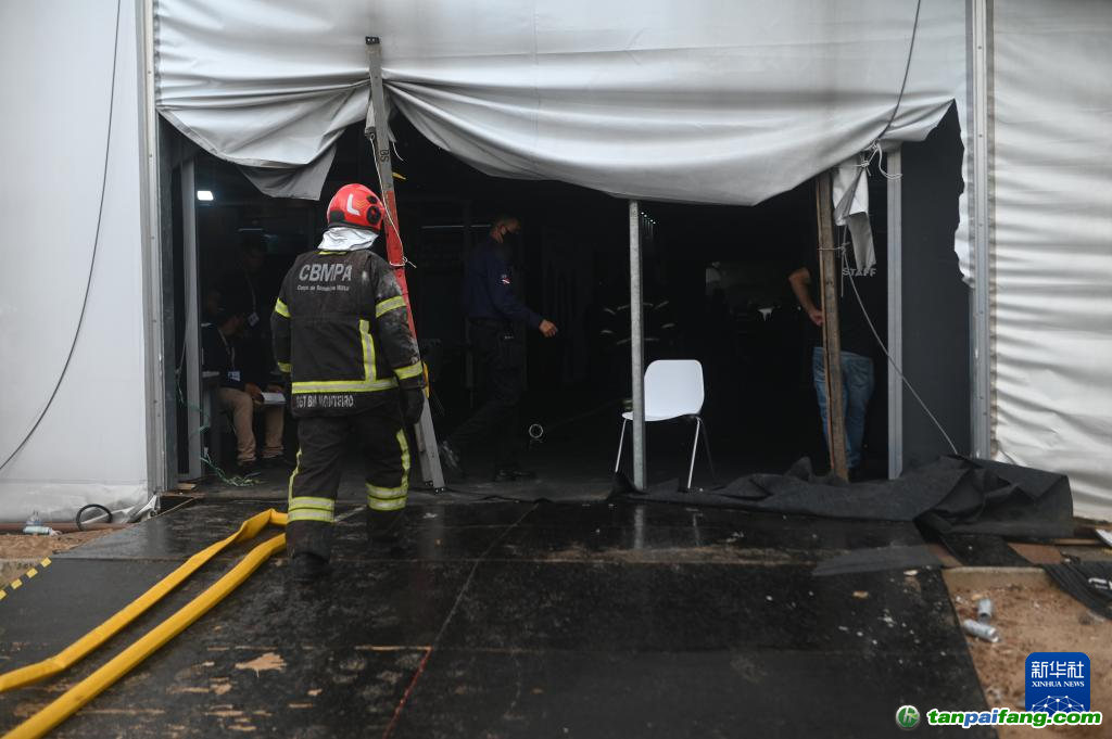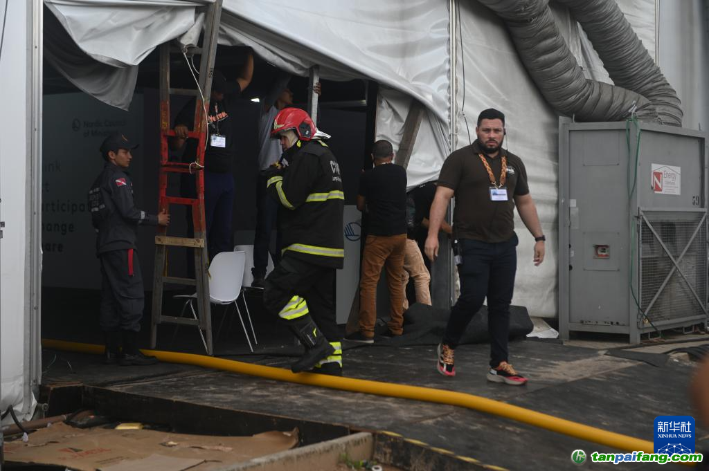 11月20日,在巴西帕拉州貝倫市《聯(lián)合國氣候變化框架公約》第三十次締約方大會(COP30)會場內(nèi),消防員與工作人員開展檢查。新華社發(fā)(盧西奧·塔沃拉 攝)