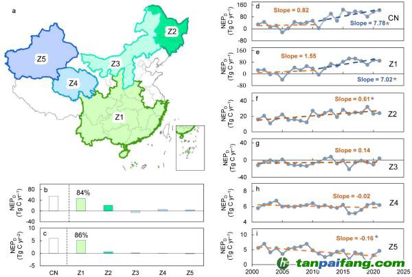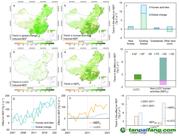 圖3. 2001–2021年人類活動和全球變化驅(qū)動NEP的時間趨勢 禸*嫆唻@洎:狆國湠棑倣茭昜蛧 τāńpāīfāńɡ.cōm