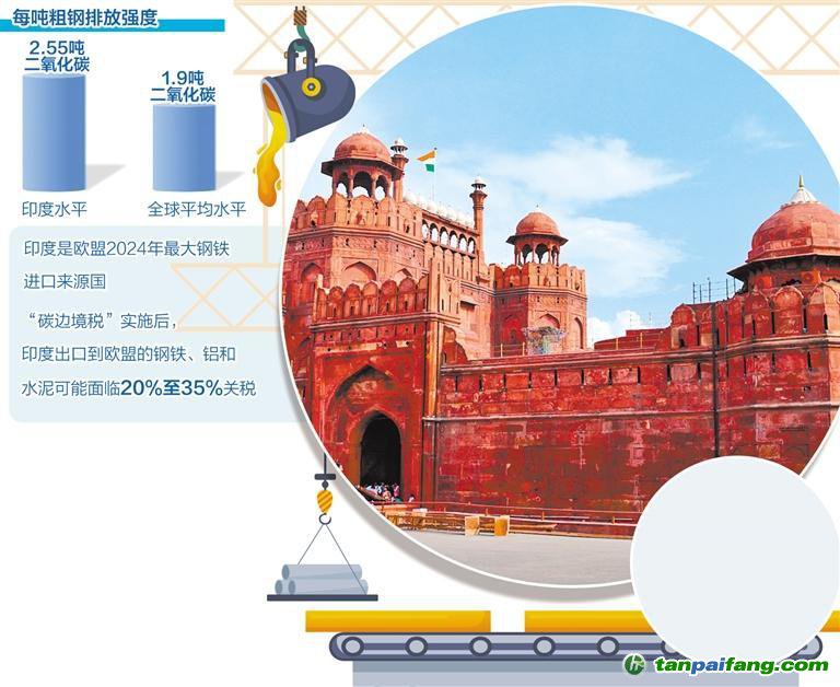 碳排放交易體系”相當?shù)奶假M用,簡言之就是歐盟對來自氣候政策寬松國家的進口高碳產(chǎn)品征收“碳差價”。該稅種涵蓋了印度對歐盟出口的上百個稅目,對印度經(jīng)濟特別是其關(guān)鍵的能源密集型出口產(chǎn)業(yè)造成重大挑戰(zhàn),直接影響鋼鐵、鋁等高碳排放產(chǎn)品,涉及印度對歐盟近100億美元產(chǎn)品的出口。