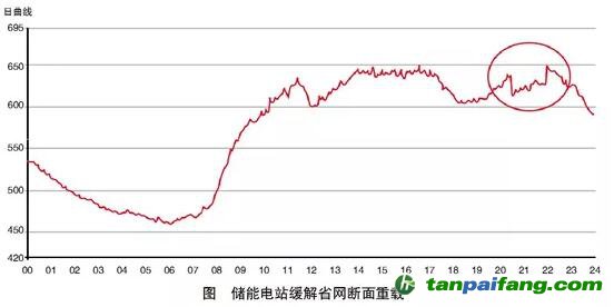 在提升電網(wǎng)供電充裕性方面,2019年7月10日至8月30日迎峰度夏期間,儲能電站在負(fù)荷高峰時(shí)段頂峰,有效緩解了湖南省網(wǎng)斷面的負(fù)荷壓力;2019年12月19日,三座儲能電站實(shí)現(xiàn)跨省調(diào)用,在低谷時(shí)段對河南進(jìn)行調(diào)峰支援,調(diào)峰電力2.6萬千瓦,持續(xù)時(shí)間2個(gè)小時(shí);2020年6月14~18日某500千伏變電站3號主變停電期間導(dǎo)致該主變下網(wǎng)超穩(wěn)定控制,通過提前調(diào)整延農(nóng)儲能電站出力,在一定程度上緩解了其所在省網(wǎng)斷面潮流及500千伏變電站供電區(qū)下網(wǎng)負(fù)荷(見圖)。