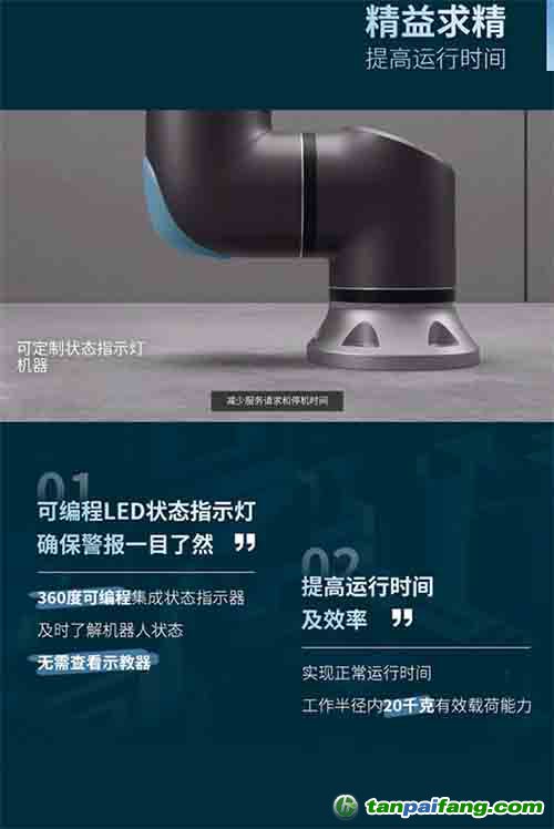 經(jīng)過風(fēng)險(xiǎn)評(píng)估,ur機(jī)器人是不必設(shè)置安全圍欄的,旁邊協(xié)同工作的員工不用擔(dān)心會(huì)有危險(xiǎn),而且URe系列協(xié)作機(jī)械臂表面光滑,關(guān)節(jié)處無尖角,這樣就避免了員工在操作時(shí)可能出現(xiàn)的傷害,在經(jīng)過德國(guó)技術(shù)檢驗(yàn)協(xié)會(huì)的安全認(rèn)證后,隨即投入市場(chǎng)。6月新發(fā)布的UR20可編程LED狀態(tài)指示燈釋放警報(bào)信號(hào),無需查看示教器,就可以將機(jī)器人狀態(tài)一目了然,提高工作場(chǎng)所安全性。