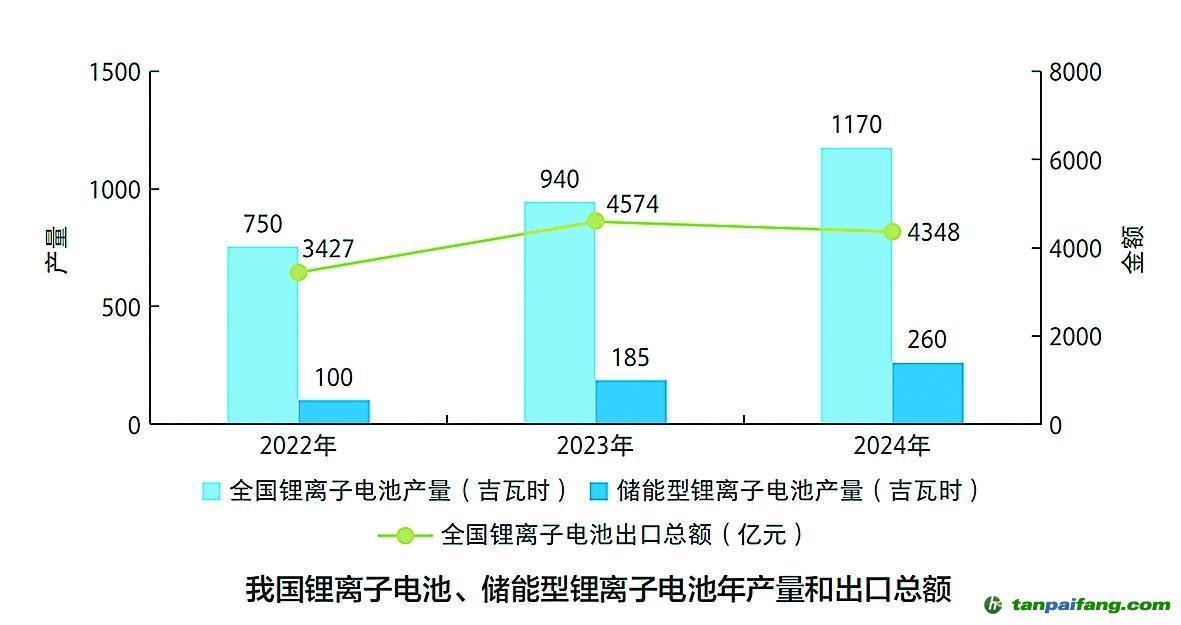新型儲能產(chǎn)量保持增長態(tài)勢。2024年全國鋰離子電池產(chǎn)量持續(xù)攀升,總產(chǎn)量達(dá)11.7億千瓦時(shí),同比增長24%,行業(yè)總產(chǎn)值超過1.2萬億元,其中,儲能型鋰離子電池產(chǎn)量達(dá)到2.6億千瓦時(shí),占全國鋰離子電池產(chǎn)量22%,連續(xù)3年提升。 本+文`內(nèi)/容/來/自:中-國-碳-排-放-網(wǎng)-tan pai fang . com